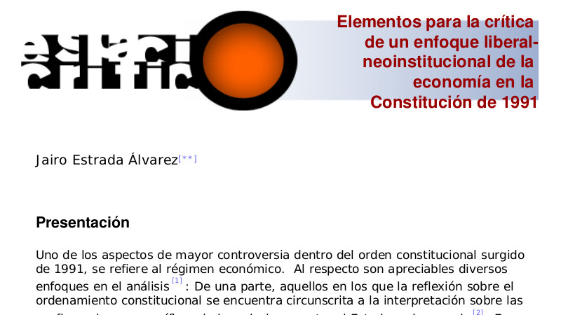 Uno de los aspectos de mayor controversia dentro del orden constitucional surgido de 1991, se refiere al régimen económico. Al respecto son apreciables diversos enfoques en el análisis: De una parte, aquellos en los que la reflexión sobre el ordenamiento constitucional se encuentra circunscrita a la interpretación sobre las configuraciones específicas de las relaciones entre el Estado y el mercado. En dicha perspectiva, son apreciables interpretaciones que van desde la caracterización del ordenamiento constitucional como uno de intervencionismo de Estado, hasta quienes consideran la conceptualización del régimen económico como uno de economía de mercado. Sobre esas dos posturas aparentemente extremas, se encuentran posiciones que podrían catalogarse de intermedias cuando, al intentar determinar el régimen económico y hacerlo compatible con la definición constitucional del Estado, construyen una síntesis entre Estado social de derecho y economía de mercado a través del concepto de "economía social de mercado". Esta última perspectiva permite además el despliegue de un discurso sobre las potencialidades de construcción democrática, que posibilitaría la Carta de 1991. De otra parte, se encuentran los enfoques que consideran la Constitución de 1991 como un componente de las transformaciones neoliberales del Estado y de la nueva fase histórica del capital. En esta perspectiva, el régimen económico, además de dar cuenta de dichas transformaciones, establece –en la forma de interpretación constitucional o de posibilidades de desarrollo legal- opciones para nuevas prefiguraciones del ordenamiento que permiten dotar de legalidad las estrategias propias de la reestructuración capitalista en marcha.