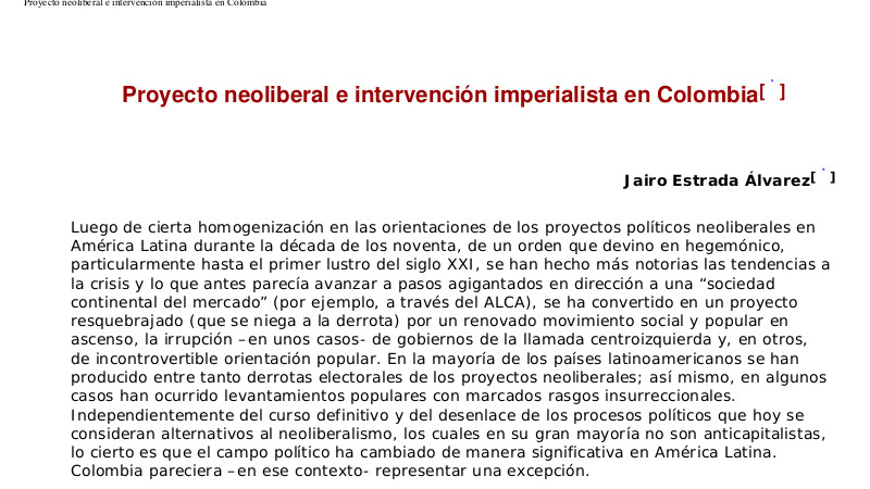 Luego de cierta homogenización en las orientaciones de los proyectos políticos neoliberales en América Latina durante la década de los noventa, de un orden que devino en hegemónico, particularmente hasta el primer lustro del siglo XXI, se han hecho más notorias las tendencias a la crisis y lo que antes parecía avanzar a pasos agigantados en dirección a una "sociedad continental del mercado" (por ejemplo, a través del ALCA), se ha convertido en un proyecto resquebrajado (que se niega a la derrota) por un renovado movimiento social y popular en ascenso, la irrupción –en unos casos- de gobiernos de la llamada centroizquierda y, en otros, de incontrovertible orientación popular. En la mayoría de los países latinoamericanos se han producido entre tanto derrotas electorales de los proyectos neoliberales; así mismo, en algunos casos han ocurrido levantamientos populares con marcados rasgos insurreccionales. Independientemente del curso definitivo y del desenlace de los procesos políticos que hoy se consideran alternativos al neoliberalismo, los cuales en su gran mayoría no son anticapitalistas, lo cierto es que el campo político ha cambiado de manera significativa en América Latina. Colombia pareciera –en ese contexto- representar una excepción.