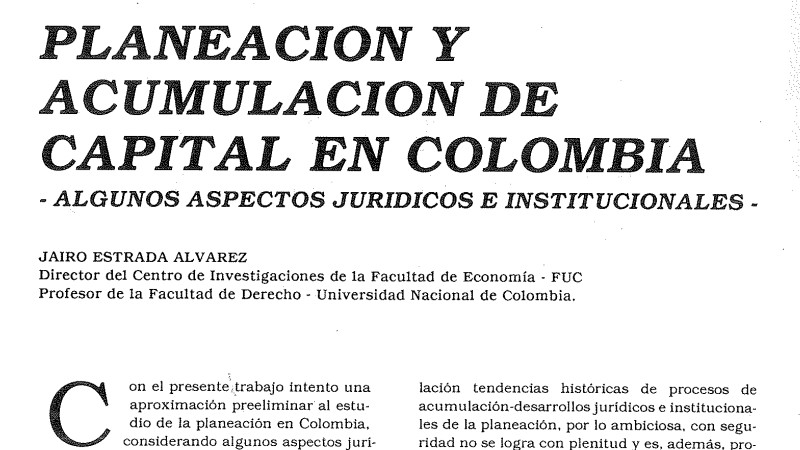Con el presente trabajo intento una aproximación preliminar al estudio de la planeación en Colombia, considerando algunos aspectos juridicos e institucionales. Con fundamento en la ubicación histórica del surgimiento de proyectos planificadores de la sociedad, y la determinación de algunas especificidades de la planeación en condiciones capitalistas, en cuanto hace referencia a la correlación planeación-acumulación de capital, propongo una periodización para el proceso y el desarrollo de las instituciones de la planeación. Tal periodización posee una intencionalidad consistente en mostrar que los procesos de planeación no sólo han estado referidos, sino que han sido componentes de las principales tendencias de la reproducción capitalista en el país.
